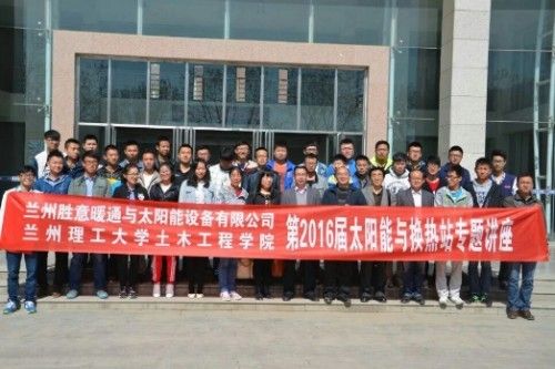 兰州胜意暖通与太阳能设备有限公司是一家以节能换热站建设与新能源开发应用为主营业务的高新企业,拥有十多项国家专利,由兰州胜意暖通与太阳能设备有限公司和兰州理工大学土木工程学院联合举办的太阳能与换热站专题讲座,已经连续举办了四届,采用专题讲座与项目参观的形式,每期一天,学生采取自愿参加的方式,取得了良好的教学与实习效果。
