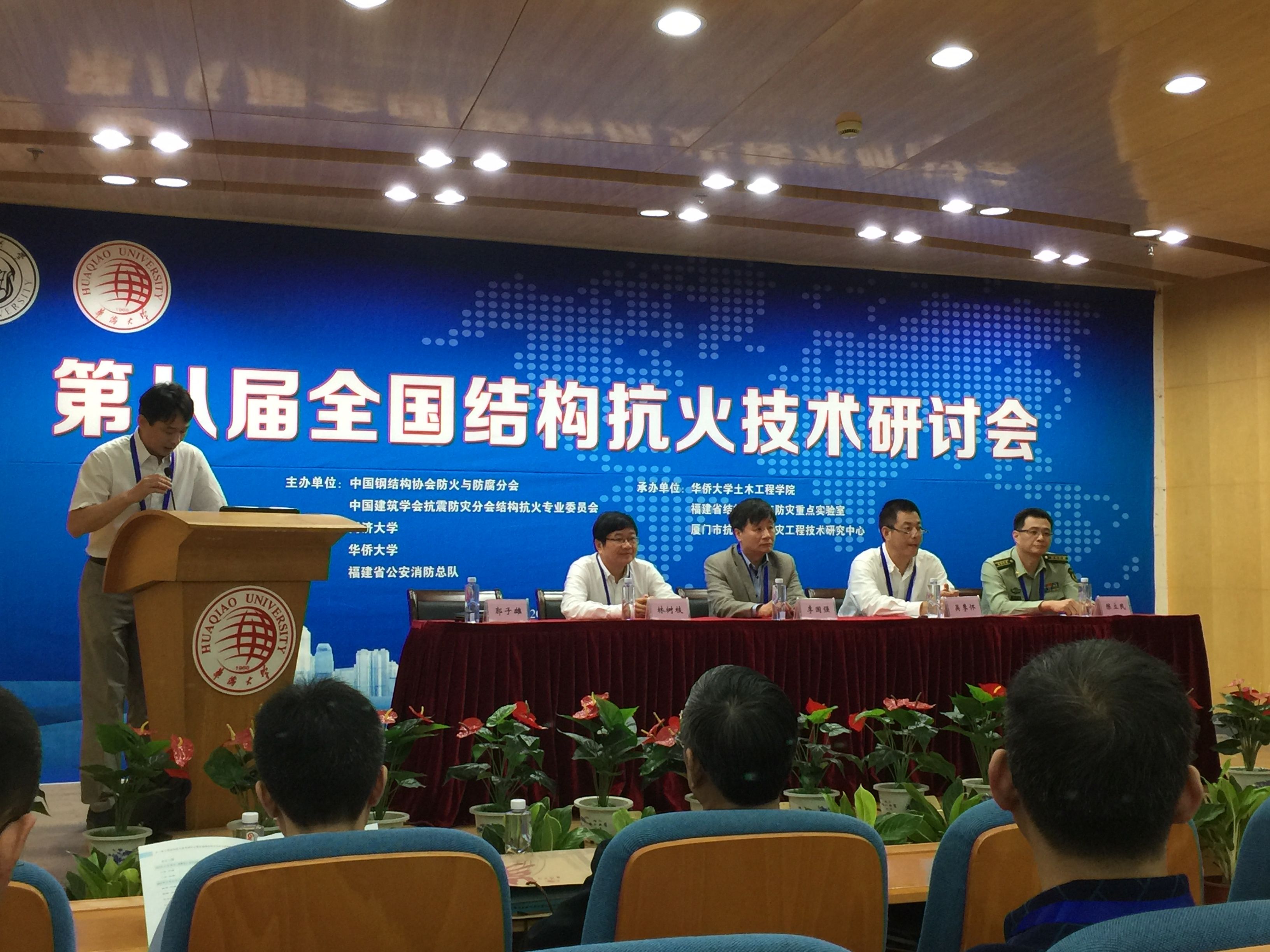 第八届全国结构抗火技术研讨会由中国钢结构协会防火与防腐分会、中国建筑学会抗震防灾分会结构抗火专业委员会、同济大学、华侨大学主办,华侨大学土木工程学院承办。会议到会代表160余人,来自于高校、研究单位和工程建设单位的专家学者就近两年以来国内结构抗火领域的新进展进行了充分的交流和讨论。会议学术交流分特邀报告和分组报告,邀请了同济大学李国强教授、新加坡南洋理工大学Tan Kang-Hai教授等9位国内外结构抗火领域的专家做了特邀报告。会议共接收论文67篇,有50多篇进行了分组交流,王文达教授担任了分会场主席主持了报告。