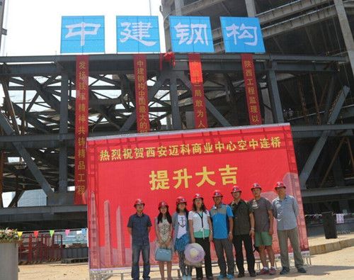 7月6日下午,学院王秀丽教授及课题组成员丑亚玲教授、马天忠副教授及来春景老师、吴长老师、周锟老师应邀参加西安迈科商业中心空中连桥提升工程。课题组现场观摩了连桥提升过程,并与中建钢构的校友进行了交流,就该工程钢结构施工难点及提升技术进行了探讨。