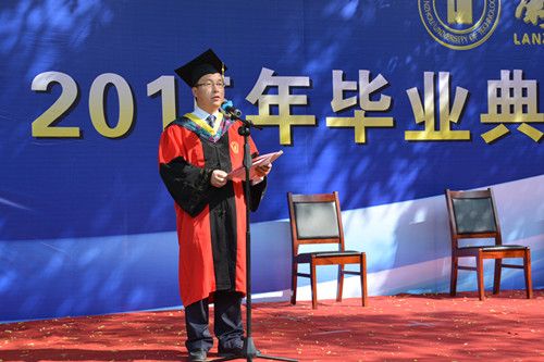 在庄严的国歌声中,学位授予仪式拉开帷幕,韩建平教授致辞,提议毕业生们用掌声向父母、母校、老师和所有给予他们关心和帮助的人表示感谢。他说,大学本科生活是人生路上的一个里程碑。今天的典礼过后,绝大多数同学将辞别母校,走向新的天地,直面种种困难与挑战。韩建平院长向同学们提出三点希望:第一,志存高远,坚守梦想。无论将来在什么样的岗位,从事什么样的工作,勿忘初衷,做最好的自己,勇敢去追寻自己的梦想!第二,静水流深,有容乃大。希望大家铭记母校“奋进求是”的校训,秉承兰理工人自强不息的“红柳精神”,保持自信、理性、平和的心态,真正沉下心来,建设国家、造福社会。第三,勤学不辍,与时俱进。在今后的工作生活中,大家必须不断学习新的知识和技能,始终保持旺盛的求知欲和创新能力,与时俱进,才能在日益激烈的社会竞争中保持优势,迈向成功。学院希望全体毕业生不仅要有解决专业问题的知识和干事创业的能力,更要具有遭遇困难坎坷都能从容应对的魄力、身处艰难险阻都能百折不挠的韧性和面对惊涛骇浪都能力挽狂澜的信心,希望全体毕业生要有学校自信、专业自信,更要将这种自信带入下一个征程,攻坚克难,踏实工作,勇于担当,敢于创新,在各自的工作岗位或学习深造中取得更大的成绩!