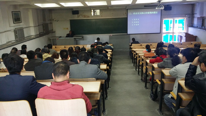 张铁军教授宣讲的题目是“社会主义核心价值观之中西文化比较”。张教授从价值观的概念,社会主义核心价值观的提出、内容、特点四个方面进行了梳理解读。他从社会主义核心价值观之中西文化比较、社会主义核心价值观的结论两个方面进行了阐释。张铁军教授指出,社会主义核心价值观凝聚着民族复兴的精神力量、承载着中华民族的精神追求、昭示着世界文化的基本走向。