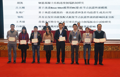 据悉,王秀丽老师、吴长老师、博士生马肖彤、梁亚雄老师的题为《荷载非对称分布下单层球壳的动力倒塌振动台试验研究》和硕士生韩祎、博士生王景玄、王文达老师的题为《内配型钢方钢管混凝土偏压构件受火全过程数值模拟》的两篇论获得优秀论文一等奖;朱彦鹏老师、博士生李京榜、叶帅华老师、硕士生张强的题为《基于锚索格构梁支护结构的高边坡健康监测研究与分析》和史艳莉老师、硕士生车向龙、博士生王景玄的题为《内配工字型钢的矩形钢管混凝土双向偏压构件参数分析》的两篇论文获得二等奖。
