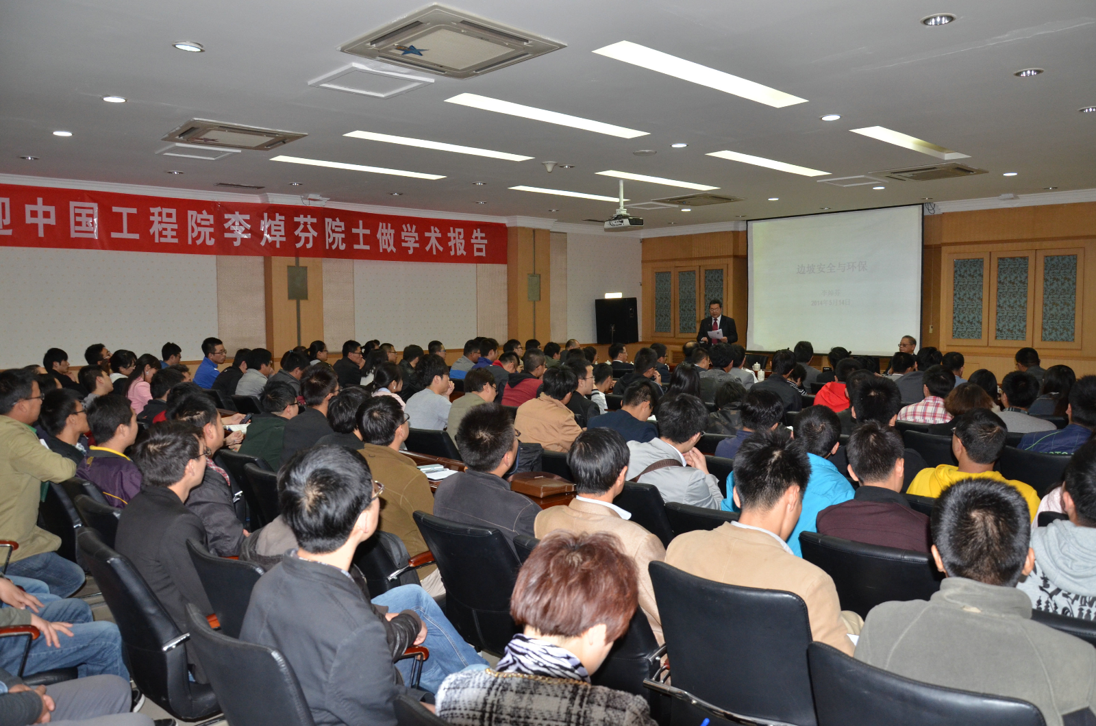 2014年5月14日下午3点,应学院邀请,香港大学副校长李焯芬院士来我院做题为“边坡安全与环保”学术讲座。西部土木工程防灾减灾教育部工程研究中心主任朱彦鹏教授,兰州大学西部环境与气候变化研究院院长孟兴民教授,学院院长韩建平教授、副院长周勇教授及杜永峰教授、王秀丽教授等20余位教师,能动学院毕贵权等教师和100余名研究生参加了学术讲座。讲座由朱彦鹏教授主持。