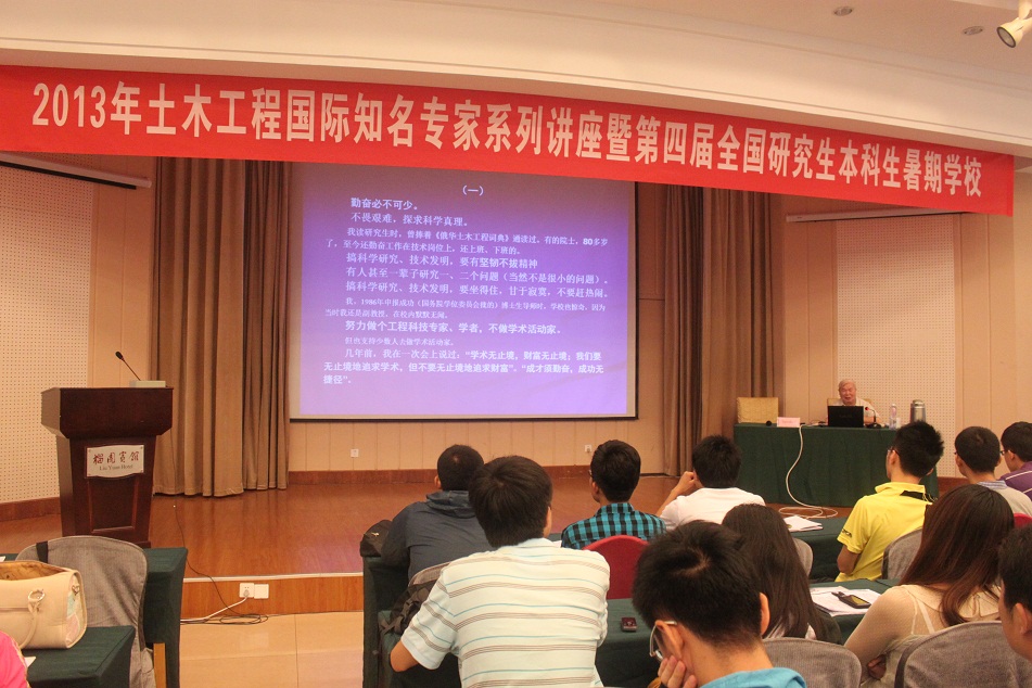 2013年土木工程国际知名专家系列讲座暨第四届全国研究生本科生暑期学校于7月1日-11日在东南大学榴园宾馆新华厅举行,我校土木工程学院共10位博士研究生、硕士研究生参加该暑期学校。
