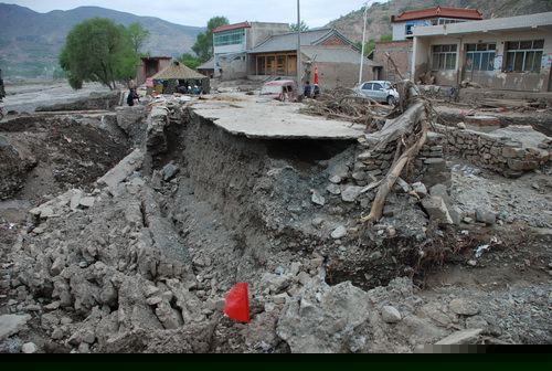 被山洪冲毁的道路与村舍