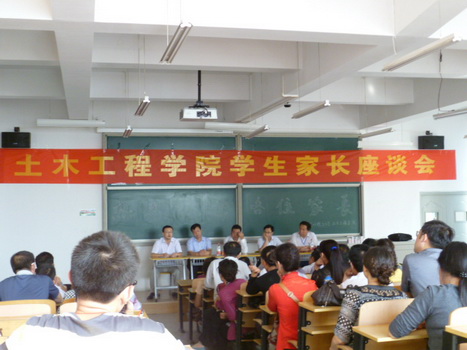 朱彦鹏院长向与会的新生家长介绍了学校和学院的基本情况,刘全恩书记介绍了学生管理的有关情况,使诸位家长对土木工程学院及自己子女所要学习的专业有所了解。许多新生家长就自己关心的学生入校后学校的管理、学生在校的学习、生活、就业、基地班选拔培养等方面的问题向学院的领导进行了咨询,各位领导做了认真的解答。通过院领导的解疑答惑,使得家长对子女的未来四年有了更深一层的了解。