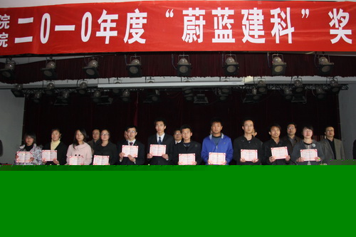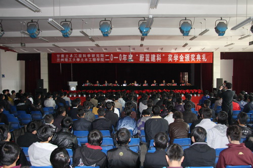 2011年3月26日,土木工程学院在西校区大学生活动中心隆重举行甘肃土木工程科学研究院-兰州理工大学土木工程学院2010年度“蔚蓝建科”奖学金颁奖典礼。甘肃土木工程科学研究院何忠茂院长、滕文生副院长、杜雷副院长、学校学生处、团委领导、土木工程学院领导、辅导员及学院500余名学生参加了颁奖典礼。颁奖典礼由学院刘全恩书记主持。