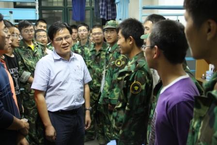 2010年9月2日晚,土木工程学院朱彦鹏院长、狄生奎书记、薛小勇副书记、党星海副院长等院领导与学院全体辅导员在新生军训结束后,前往新生宿舍看望新同学。