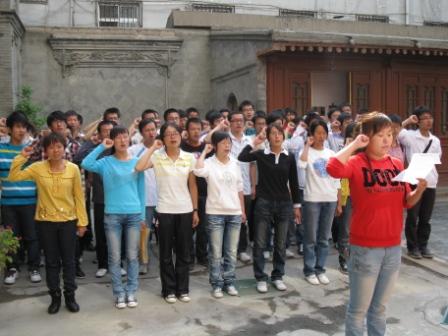 结束了对展厅的参观学习,党员们怀着对先烈们的无比崇敬和怀念,聚集在党旗之下,再次紧握右拳,重温入党誓词,再次坚定了向先烈学习,履行党员义务,复兴中华的誓言。