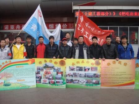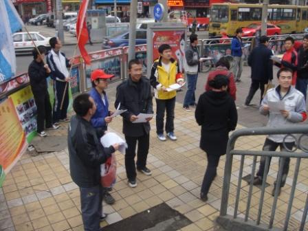 2010年3月5日是“学雷锋日”,土木学院青年志愿者组织15名学生参加了“迎世博、庆亚运、讲文明、树新风,市民礼仪暨志愿服务”主题活动。本次活动由七里河区政府主办。活动当天,天气阴冷,也未阻挡志愿者们奉献爱心的脚步,同学们配合主办单位,开展活动照片宣传展,同时,热情的为广大市民散发宣传单并进行讲解,清洁路边卫生,赢得市民一致好评。