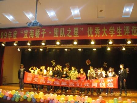 2009年12月9日晚,由校团委、校学生会主办,土木工程学院承办的 “宜海骄子·校园之星”之团队之星评选活动在西校区大学生活动中心落下帷幕。
