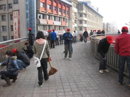 2008年12月5日是第十六个世界志愿者日,土木工程学院青年志愿者为积极响应志愿者组织的号召,于12月5日上午奔赴兰州西站,举办了以“洁净家园”为主题的环境大清理大型志愿活动。活动受到了兰州西站街道办事处的高度关注,志愿者代表接受了甘肃电视台与鑫报记者的采访。5日上午,气温低至零下9℃,土木工程学院青年志愿者们却热情高涨,手拿抹布、扫帚、簸箕等清洁工具对西站圆形天桥上的污垢、垃圾进行了彻底全面的清理。