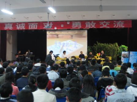 伴随着阵阵掌声和欢笑声,在接下来的“勇敢交流”环节中,嘉宾和现场的同学讨论了大学生与父母的沟通、上大学的目标、大学里的友谊和大学生的恋爱等问题。通过对这些问题的讨论,使学生明白应该树立正确的人生观、价值观和恋爱观,努力学习自己的专业知识,把握机遇。