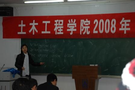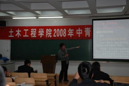 2008年11月15日,土木工程学院在1北304教室举行了2008年中青年教师讲课竞赛。本次讲课竞赛共有13名中青年教师参加,学院教学指导委员会12名教师担任评委,部分青年教师观摩了比赛。赛前党星海副院长宣布了竞赛规则和评分标准。