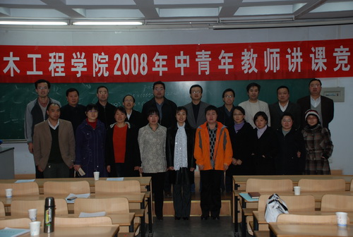2008年11月15日,土木工程学院在1北304教室举行了2008年中青年教师讲课竞赛。本次讲课竞赛共有13名中青年教师参加,学院教学指导委员会12名教师担任评委,部分青年教师观摩了比赛。赛前党星海副院长宣布了竞赛规则和评分标准。
