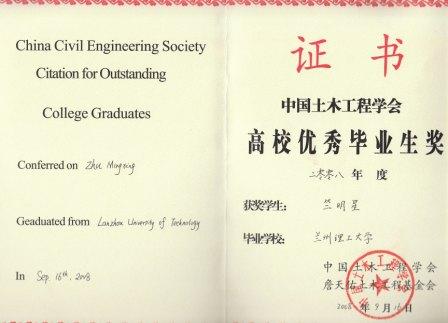 我校2008届毕业生荣获中国土木工程学会高校优秀毕业生奖