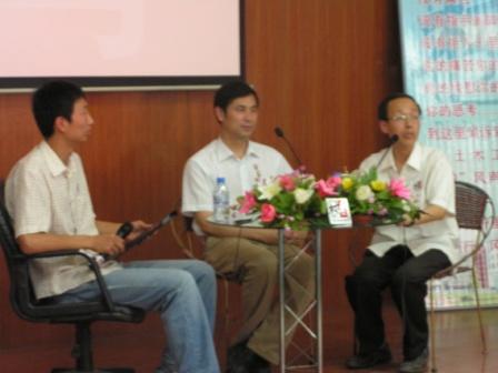 二〇〇七年六月十五日,土木工程学院举办的谈话类节目“谈校风声”第四期在校本部如期举行,邱平副校长、教学名师杜永峰教授作客“谈校风声”,成为本期“谈校风声”的特邀嘉宾。校团委副书记吴学楷、土木工程学院副书记薛小勇、副处级组织员刘永军老师与全校一百余名师生参加了本次活动。本次活动的主题是“真诚面对、勇敢交流”。邱平副校长和杜永峰教授围绕“青春的痕迹”、“幸福之觞”、“最初的梦想”几个环节向年轻的大学生回忆了自己的大学生活、年轻时候的梦想与追求,与台下的百余名师生进行了真诚的对话、交流与沟通。两位嘉宾以自己闪耀的青春奋斗历程勉励青年新一代的年轻大学生珍惜美好时光,勤奋学习,刻苦努力,用自己的智慧和汗水谱写当代大学生无悔的青春,实现自己的梦想与追求。节目最后,“谈校风声”栏目组成员将汇集有反映广大同学心声的册子送给了邱平副校长。两位嘉宾同时在嘉宾留言板上欣然提笔留言,邱平副校长的留言是“祝同学们放飞梦想”,杜永峰教授的留言是:“栏目沟通师生思想,希望栏目越办越好。”