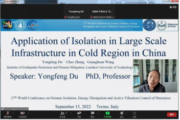 本届会议吸引了大批从事结构隔震、消能减震和地震易损性、多源振震双控等结构控制、桥梁和过道减震、非结构构件地震损伤等方面的研究者参会。本次会议除了现场参会的代表、研究生之外,还给世界各地的代表提供了线上参会的机会。国际结构减震控制学会理事兼中国团组发言人、兰州理工大学防震减灾研究所所长杜永峰教授线上参会,于9月13日做了题为“中国寒冷地区超长隔震结构应用”的分会场报告,并在兰州理工大学为研究生设立线下分会场。博士研究生张超同学、硕士研究生王志杰同学为分会场提供了视频报告。
