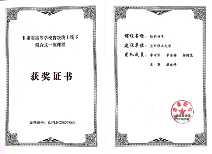 《结构力学》作为土木工程专业的一门专业核心基础课,在土木工程专业课程体系中起到承上启下的作用。近年来,《结构力学》课程教学团队坚持“以学生为中心”的教学理念,积极探索一流课程建设模式,形成了“思政教育-专业教育-创新教育”三创融合的课程教学模式,发起的“小灶课堂”“空中自习室”打破了教学的时空限制,形成点滴激励机制,不断激发学生学习兴趣,并探索形成了教师A-B角协同互动式教学模式,对提升结构力学教学质量起到了积极的推动作用。通过多年的建设,《结构力学》课程入选甘肃省一流课程、校级一流课程、校级示范性混合式教学课程,课程教师团队成员也获得省级创新创业教学名师、省级课程思政教学名师等荣誉称号。