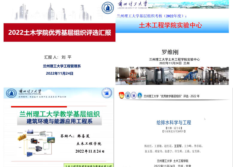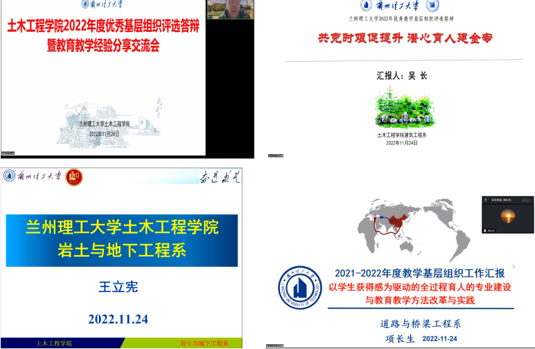 为了进一步加强基层党组织建设,分享基层党组织和教育教学经验,推荐优秀基层党组织,提升基层组织育人水平,11月24日晚土木工程学院通过线上方式举行了2022年度优秀教学基层党组织评选暨教育教学经验分享交流会。土木工程学院党委书记陈永泰、院长王文达教授、副院长殷占忠教授、周凤玺教授、李万润教授以及基层党组织负责人、党支部书记及院综合办、教学办、学生办等相关人员参加了此次会议。此次会议由副院长李万润主持。