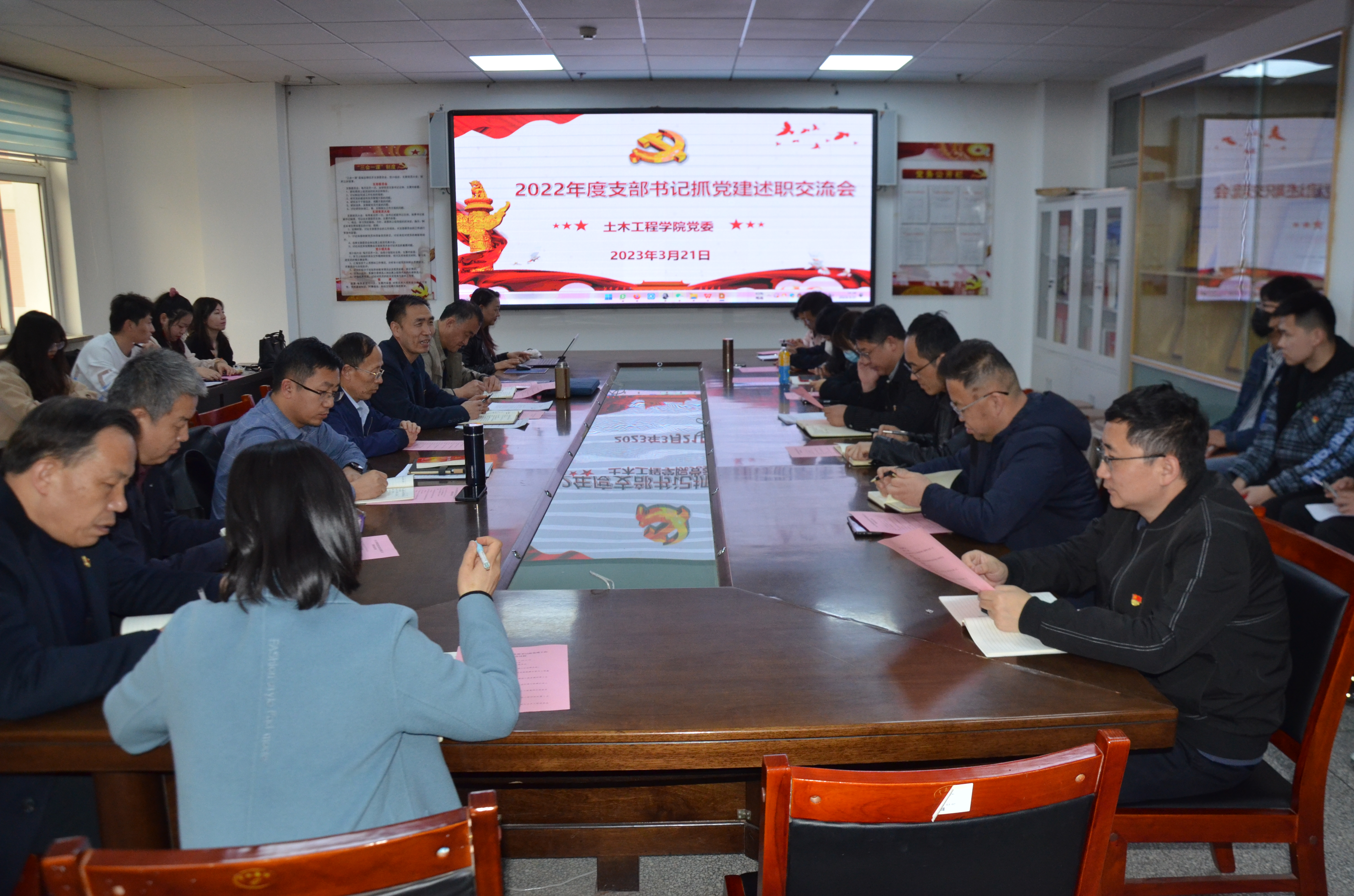 为加强学院党组织建设,提高党建工作质量,切实强化党支部书记责任意识和履职意识,3月21日下午,土木学院党委召开2022年度党支部书记抓基层党建工作述职大会。会议由学院党委书记陈永泰主持,学院党委委员、各党支部书记、组织员参加。