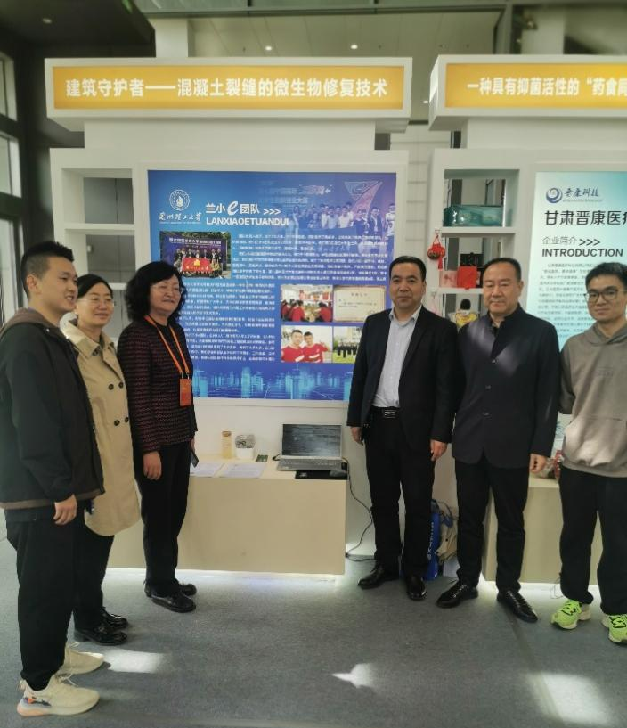 兰州理工大学是甘肃省受邀参与本次展交会的两所高校之一,参展项目负责人臧洋同学于2017年09月至2019年09在我校学习期间志愿前往武警四川总队达州支队执勤四中队服役,负责的“建筑守护者—混凝土裂缝的微生物修复技术”项目曾获第七届、第八届互联网+大学生创创新创业大赛甘肃省金奖,第十三届全国大学生电子商务“创新、创意及创业”挑战赛省级三等奖,第十三届“挑战杯”中国大学生创业计划竞赛国家级铜奖。甘肃省退役军人事务厅副厅长康纯梅和兰州市退伍军人事务局局长杨文俊现场询问了项目相关情况,对兰州理工大学土木工程学院的教学成果表示肯定,并鼓励团队继续努力,发扬退伍军人退伍不退色的优良品质,将团队创新成果不断深入优化,打造出能够服务社会的好产品。