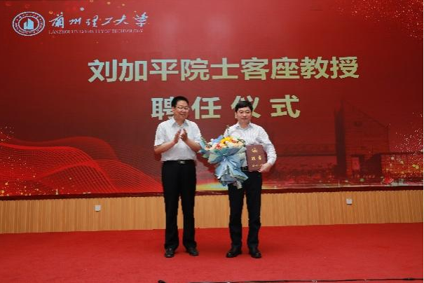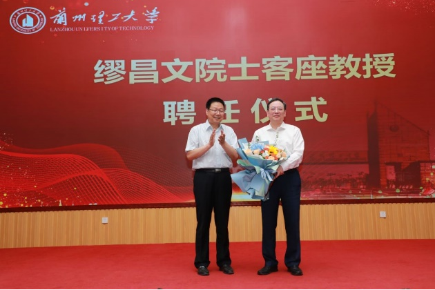 聘任仪式上,丁虎生代表学校为缪昌文院士和刘加平院士颁发兰州理工大学客座教授聘书。