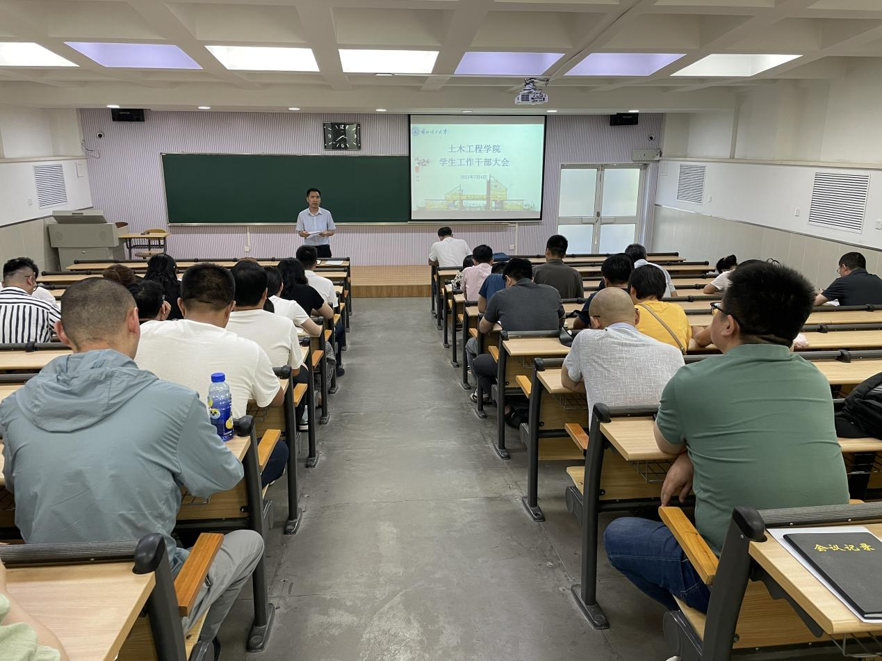 2023年7月4日,土木工程学院召开学生工作干部大会。土木工程学院党委书记陈永泰、院长王文达、党委副书记王仪杰以及全体班主任、辅导员参加了本次会议。