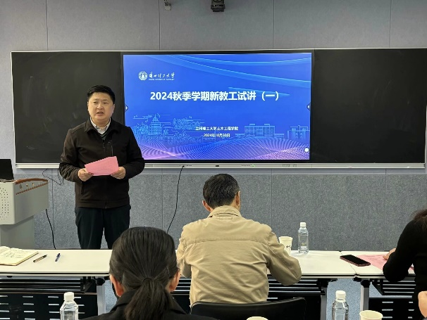 评课专家坚持问题导向,逐一对青年教师基本素质、教学设计、教学内容、教学过程、教学技能等方面进行了全面评议,提出了宝贵意见和建议。新课试讲采取“一人讲、众人评”的方式,让教师在“说”中理思路、在“讲”中强内功、在“评”中促提升,为新教工的顺利开课打下坚实基础。