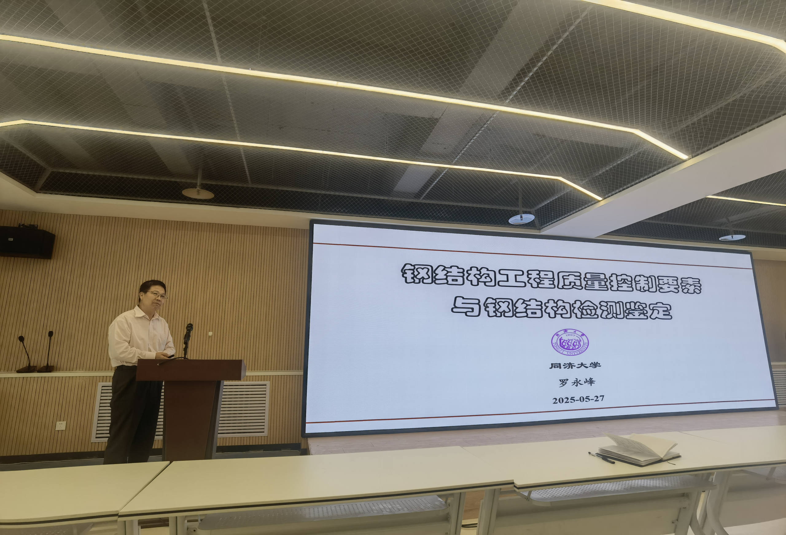 罗永峰教授做了题为“钢结构工程质量控制要素与钢结构检测鉴定”的学术报告,重点通过大量国内外工程事故案例讲述了影响钢结构质量与安全的主要因素。东南大学张建教授做了题为“基于非接触感知的桥梁智能检测与轻量化监测”的学术报告,主要聚焦于团队应用数字化技术在保障重桥梁工程安全方面的最新研究成果。会后专家和现场的同行、老师及同学们进行了深入交流。