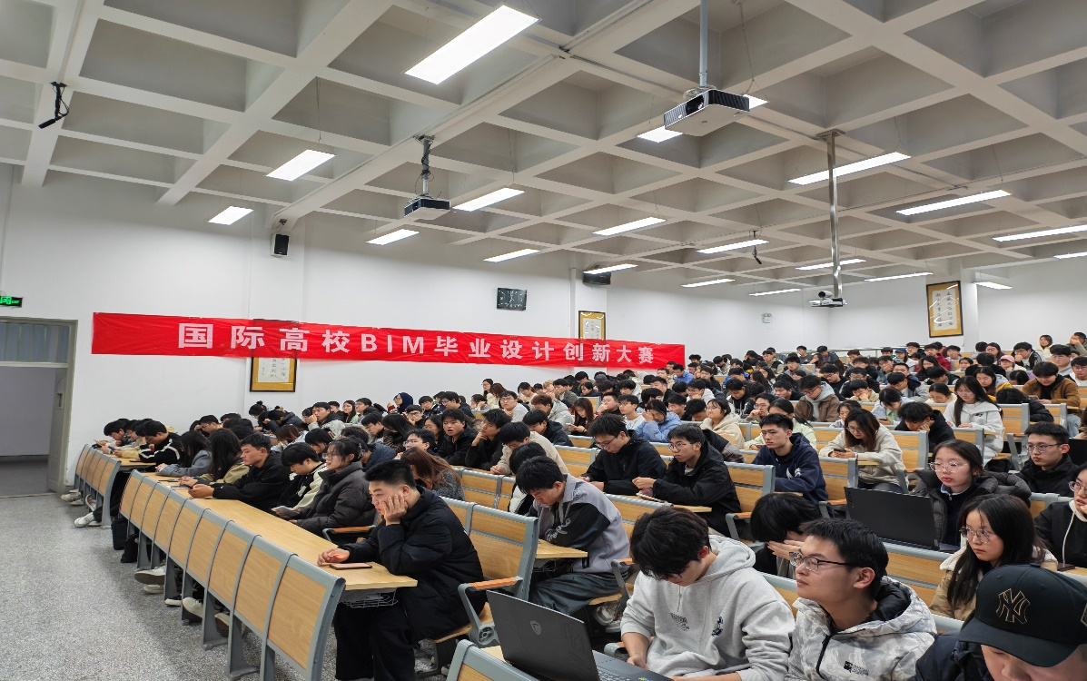 作为全国普通高等学校学科竞赛排行榜赛事,国际高校BIM毕业设计创新大赛始终坚持“以赛促学、以赛促教、以赛促改”的宗旨,致力于拓宽大学生的建筑专业视野,着力培养以BIM技术为主的新技术应用型创新人才。本次比赛共有来自土木与水利工程学院等13个学院近400名学生参加。本次赛事设置4个赛道,采用笔试形式考核同学对BIM建模及基础知识的掌握程度。经过评审,本次大赛最终确定一等奖4组,二等奖13组,三等奖20组,部分获奖团队将代表学校参加2026年5月第十二届国际高校BIM毕业设计创新大赛国赛。