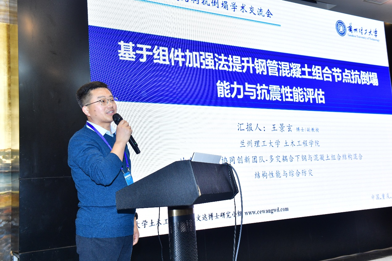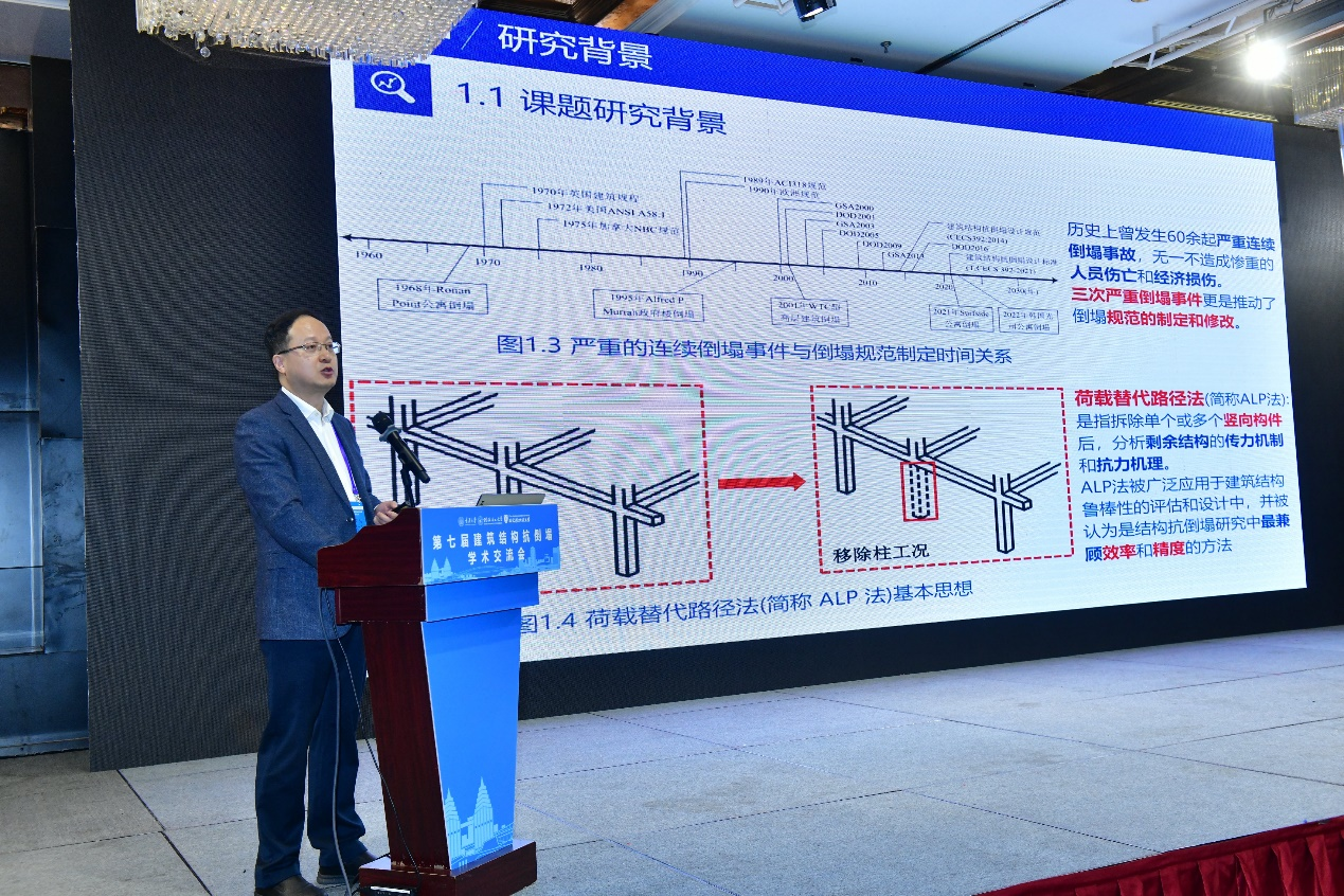 本次会议共安排12个大会报告、9个分会场15个邀请报告和54个专题报告。比利时皇家科学与艺术学院外籍院士、同济大学李国强教授,新加坡南洋理工大学Tan Kang Hai教授、清华大学陆新征教授、哈尔滨工业大学吕大刚教授等做了大会报告。“钢与混凝土组合结构混合结构”负责人王文达教授作了题为“钢管混凝土组合结构抗连续倒塌机理及提升策略”的大会报告,王景玄副教授作了题为“基于组件加强法提升钢管混凝土组合节点抗连续倒塌能力与抗震性能评估”的分会场邀请报告,郑龙博士做了题为“仿生吸能板提升停车结构防撞性能研究”的分会场专题报告。各报告人分享了在建筑结构倒塌领域的最新科研与应用进展,与会者间进行了积极的讨论和问答,现场交流气氛热烈。