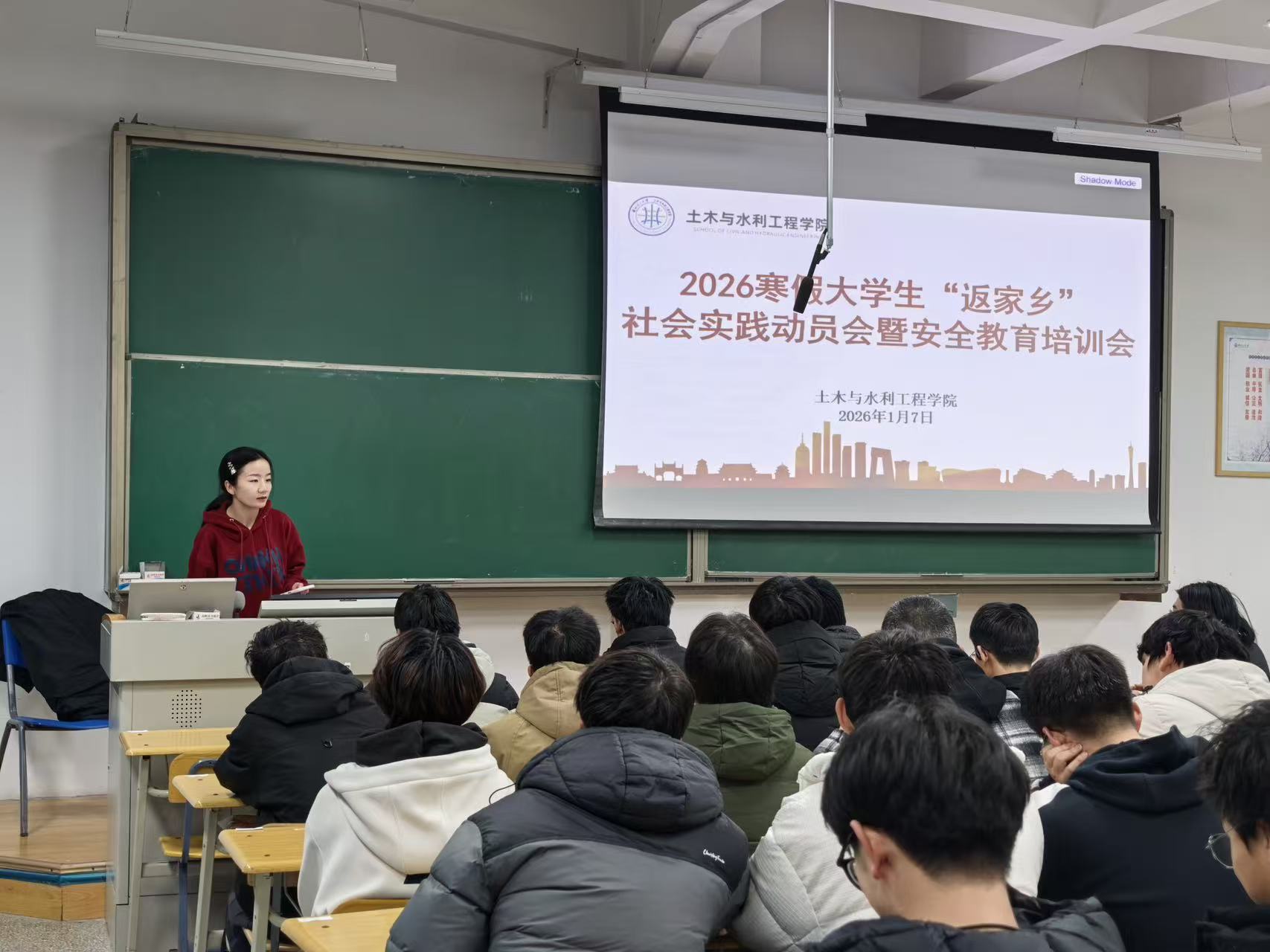 为切实保障学生寒假“返家乡”社会实践安全有序开展,1月7日,土木与水利工程学院召开2026年寒假“返家乡”社会实践动员会暨安全教育培训。各实践队学生代表共计100余人参加会议。会议由学院金悦老师主持。