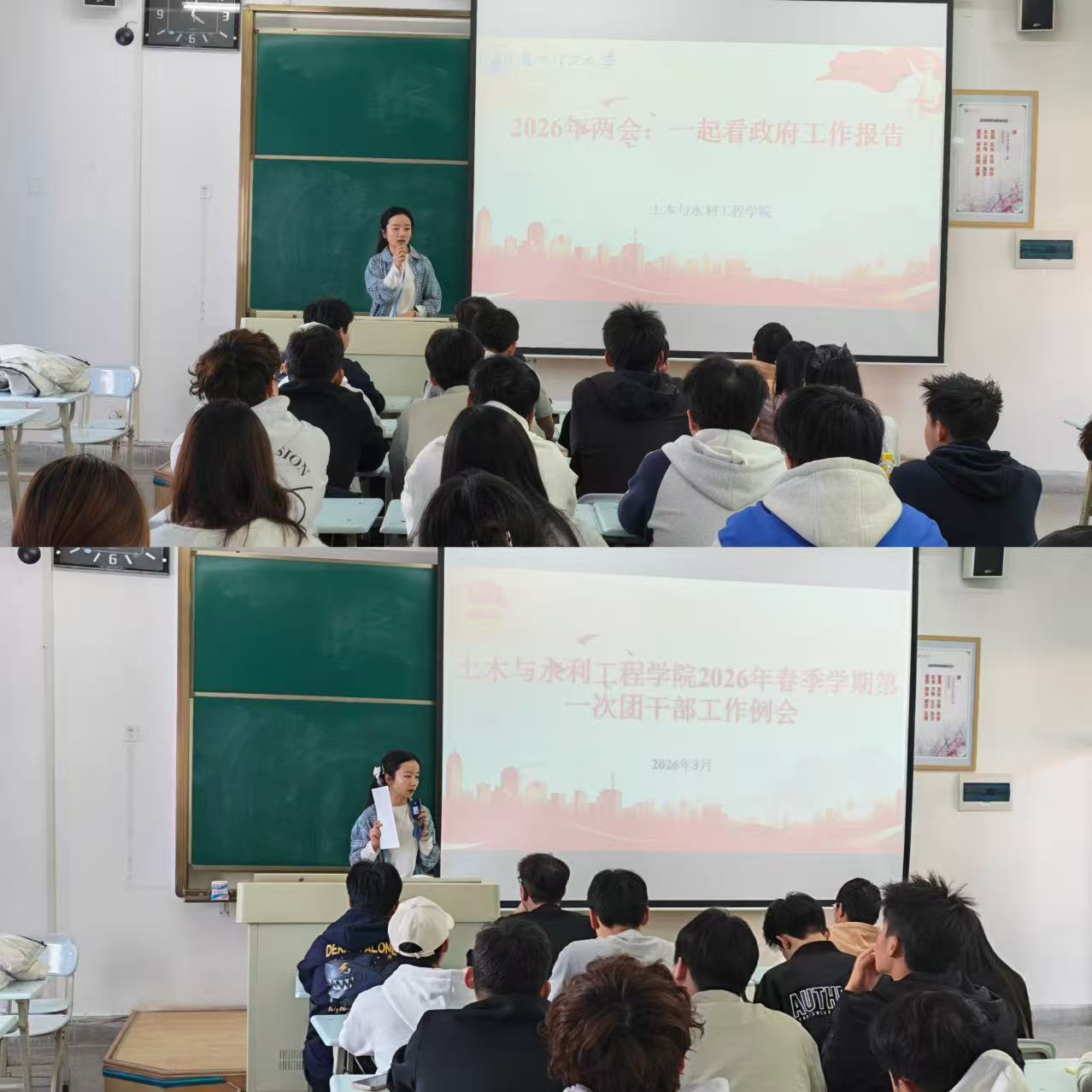 会上,全体团学骨干集中学习了2026年全国两会政府工作报告,围绕报告中关于教育、科技、人才、青年发展等重要论述,结合土木水利学科特色与学院实际进行解读,引导团学骨干深刻把握时代脉搏,将个人成长与国家发展、行业需求紧密结合,坚定理想信念、勇担青春使命。理论学习后,金悦老师就基层团组织建设、主题团日活动开展、学生骨干履职规范、社团管理与服务、学风建设、校园文化活动组织等重点内容进行系统讲解,明确工作标准、梳理工作流程、解答工作困惑,进一步提升团学骨干的政治素养、业务能力与服务水平。
