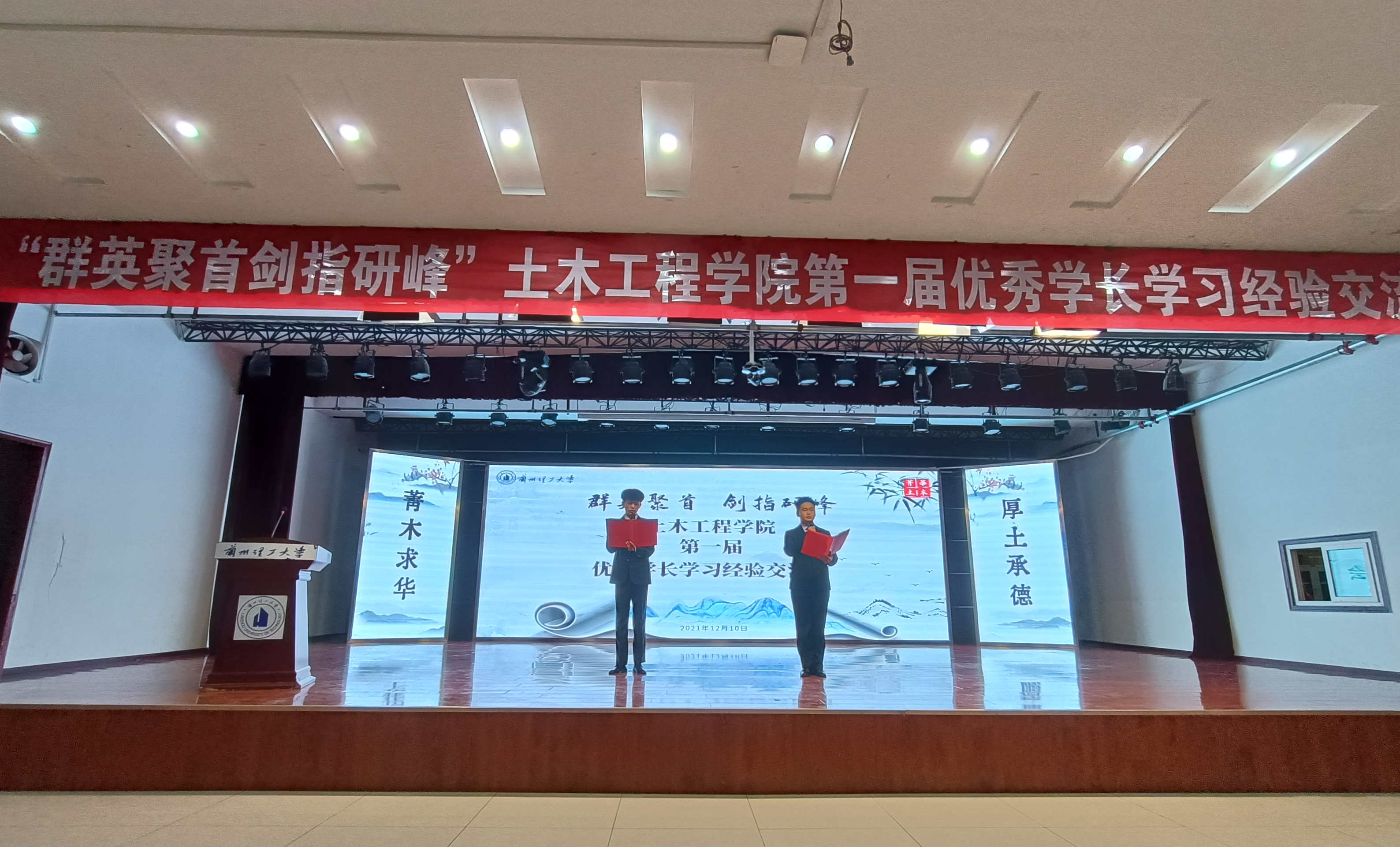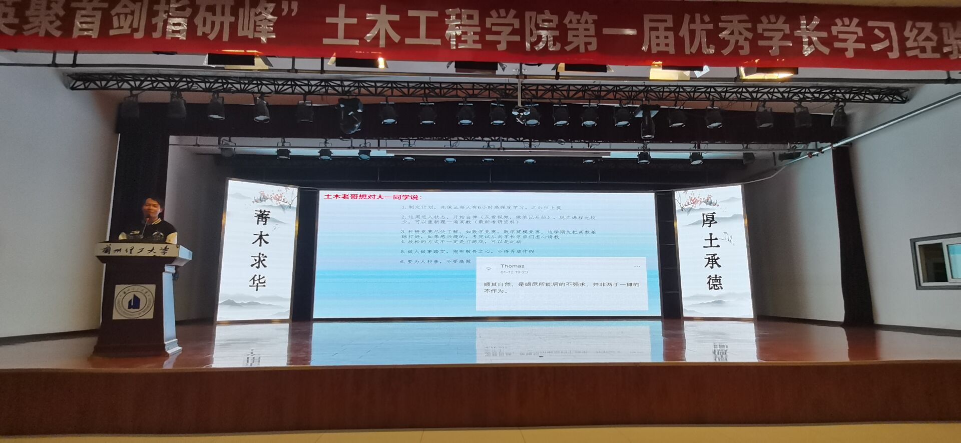 为响应校园号召进一步加强学院学风建设,帮助同学激发学习兴趣,养成良好学习习惯,掌握正确学习方法。土木工程学院于12月15日在彭家坪校区大学生活动中心举办了“优秀学长经验交流会”,学院团委书记郝大鹏、21级辅导员徐金龙出席本次交流会。