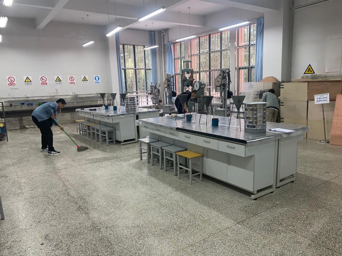 活动中,同学们忙碌而有序,在实验室老师的指导下,从地面墙面到物品,都精心进行了擦拭整理,仪器设备同学们更是小心翼翼地对待。同学们说,虽然刚入校,但是做为土木学院的学生,得知学院正在进行土木工程专业教育认证,也想做一些力所能及的事情略尽绵薄之力。而且做为本专业的学生对这个场地充满了亲切感,实验室内的设备和物品是在以后的学习中会使用到的,此次机会正好可以预先熟悉了解。