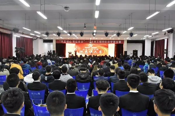 为学习宣传贯彻党的十九大精神、深入推进“两学一做”学习教育常态化制度化,12月13日晚上,土木工程学院在西区大学生活动中心三楼举行“不忘初心,牢记使命”微党课大赛。我院党委吴学楷书记、党委王玲副书记、各党支部书记以及全体学生党员、班团干部、入党积极分子代表等460余名师生现场观摩了比赛。