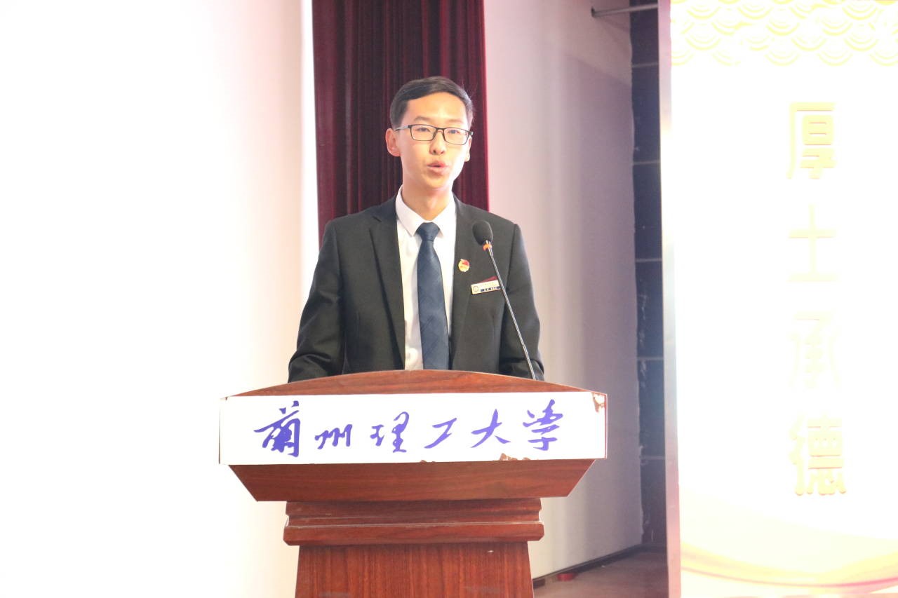 田治学代表学院党委讲话,首先对我院团学工作能够一贯坚持以习近平新时代中国特色社会主义思想为指导,能够全面学习贯彻习近平总书记致全国青联十三届全委会和全国学联二十七大贺信精神给予了肯定。他说“小疑必问,大事必闻才算学生”,希望新一届团学干部要志存高远、脚踏实地、积极应对、勇于挑战,加强团学队伍作风建设,全心全意为同学服务,积极践行社会主义核心价值观,大力弘扬民族精神和时代精神,以蓬勃朝气、浩然正气、昂扬锐气,勇担时代赋予的重任,为实现中华民族伟大复兴奉献青春力量。