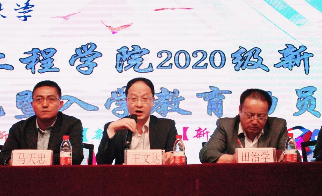王文达院长代表土木工程学院全体教职工向2020级新生致欢迎辞,并从师资队伍、学科平台、专业前景、科研成果、荣誉成果等方面向2020级新生详细介绍了我院的情况,让新同学对我院有了更深的了解。并且鼓励同学们要利用好学院提供的良好平台,树立学业自信、专业自信,走得更高更远,实现人生的辉煌。