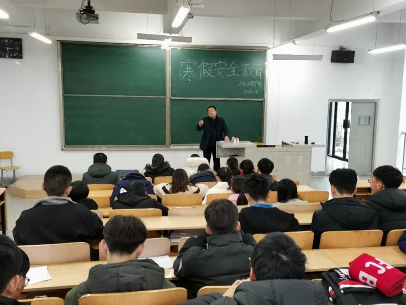 1月10日下午,土木学院寒假留校学生安全教育大会在彭家坪校区4#205教室举行。学院党委书记田治学、学校保卫处副处长丁勇辉出席了会议,全体辅导员及寒假留校学生参加了会议。