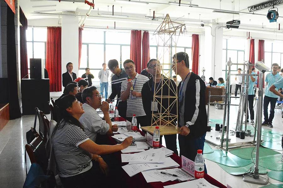 本次竞赛的初赛于4月13日举行,总计112组336位选手报名参赛。要求每组在规定时间内完成作品制作、设计计算书撰写、图纸绘制等内容。组委会对模型进行严格尺寸检测,不进行加载测试,重点考察制作工艺与结构合理性。初赛由多名评委现场进行打分,根据综合成绩排名选前30组进入决赛
