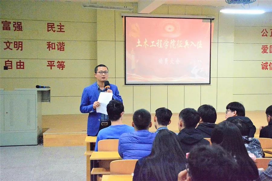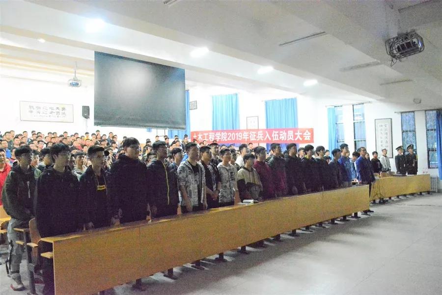 为深入贯彻全国大学生征兵工作会议精神,大学生征兵宣传教育工作,帮助在校学生了解今年的征兵政策,激发广大学生参军入伍积极性,4月11日晚,我院在兰州理工大学西校区2#108举行了征兵入伍动员大会。本次大会由学院团委书记樊洁平老师主持,参加会议的有优秀退伍大学生孙李成同学、兰州理工大学国旗护卫队代表及2018级学生代表共计300余人。