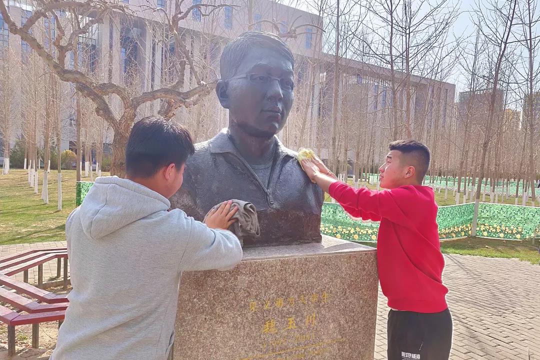活动开始,同学们在班委的组织下,对玉川雕像和玉川广场进行清扫。随后,班主任丁勇辉老师向全班同学介绍了魏玉川同学的英雄事迹,魏玉川同学舍己救人的英勇事迹,展现了当代大学生崭新的精神风貌,践行了社会主义核心价值体系,他用满腔热情和宝贵生命诠释了当代大学生的价值追求和理想信念。希望同学们努力学习、勇敢面对生活,以实际行动告慰英雄的在天之灵。最后同学们怀着崇敬的心情向玉川雕像三鞠躬致敬,敬献花篮,以表达对魏玉川学长的缅怀之情,气氛庄严肃穆。