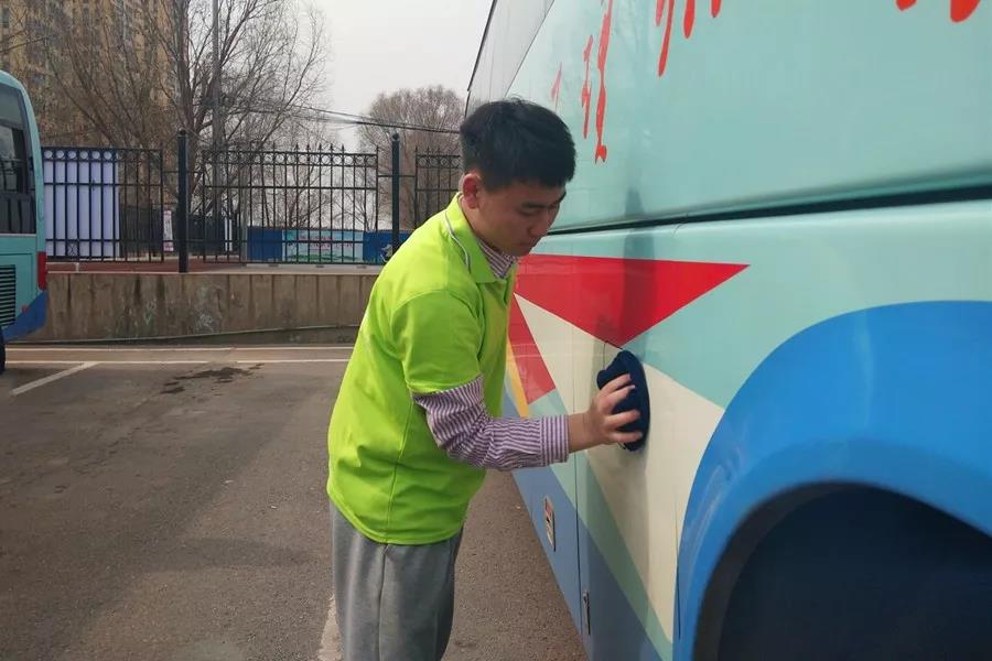 校车作为学校的一面流动旗帜,也是向外界反应学校形象的一个标志。3月5日,土木工程学院组织学生在西校区校车停放点开展了“3·5学雷锋”系列活动之清洗校车活动。