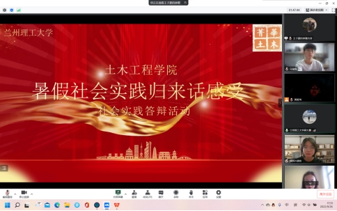 为进一步夯实社会实践成果,广泛交流我院社会实践活动的优秀经验,扩大实践育人的覆盖面和影响力,土木工程学院与9月26日开展了暑期三下乡“实践归来话感受”分享交流会。本次活动以线上方式进行,学院团委书记郝大鹏,辅导员罗瑞、徐金龙,院学生会工作人员以及实践团队代表参加了本次活动。