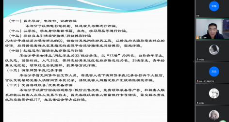丁勇辉老师围绕交通安全、消防安全、消费安全、饮食安全、非法传教传销、校园贷、心理健康、网络安全、应急救护等多个方面进行全面讲解,多方面多维度强化学生的安全意识,提高学生的自我保护能力。通过一个个发生在身边的真实案例,向同学们阐释了校园安全和掌握法律安全知识的必要性,对新同学进行了鲜活的警示教育。他提醒新生在日常生活中一定要时刻提高自身的防范意识,遇到棘手问题第一时间与老师联系,切勿轻信他人;同时也要注意个人安全,保护自己,不做危害自身和他人的举动。