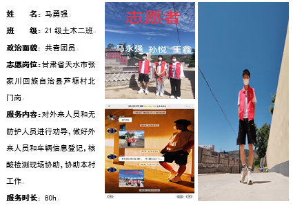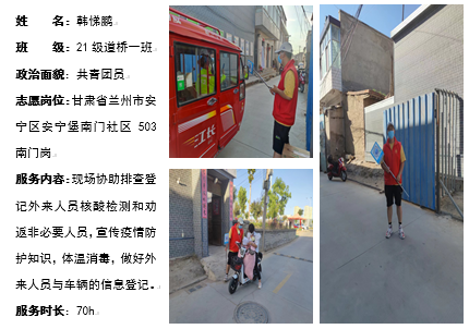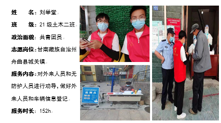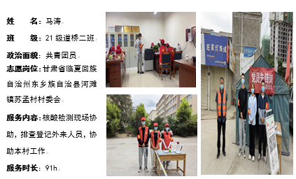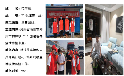 在本轮抗击疫情的斗争中,我校土木工程学院大学生们积极参与“扬帆计划”化身“志愿红”,以时不我待的精神,分秒必争的行动主动担责,响应党的号召,投身于疫情防控战场,他们展现出新时代青年的责任与担当,成为了抗疫路上披坚执锐、一往无前的青春力量。
