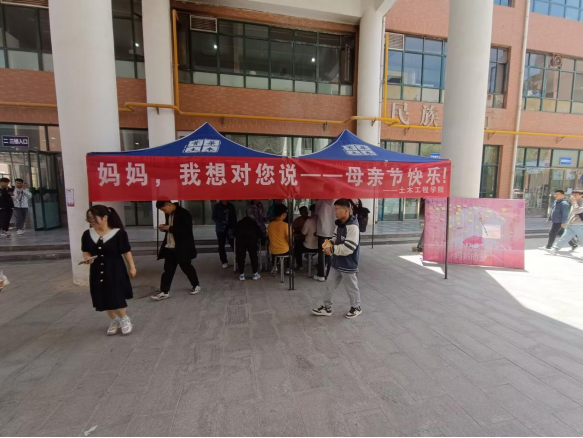 为弘扬中华民族传统美德,引导学生树立感恩观念。土木工程学院于5月14日在彭家坪校区北村红柳广场举办了以“妈妈,我想对你说——母亲节快乐!”为主题的感恩母亲特别活动。