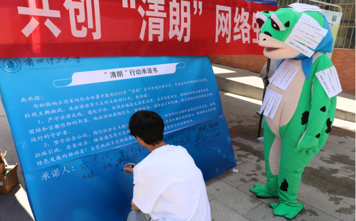 为贯彻落实习近平总书记关于网络强国的重要思想,进一步加强学院网络文明建设、推动网络文明传播,提升青年网络文明素养,防止网络沉迷,预防网络诈骗,全面推进依法上网、安全上网、文明上网、绿色上网。根据《兰州理工大学2023-2024年度精神文明建设工作要点》工作部署,土木工程学院团委于10月18日在彭家坪校区红柳广场开展了“清朗”网络文明宣传活动。